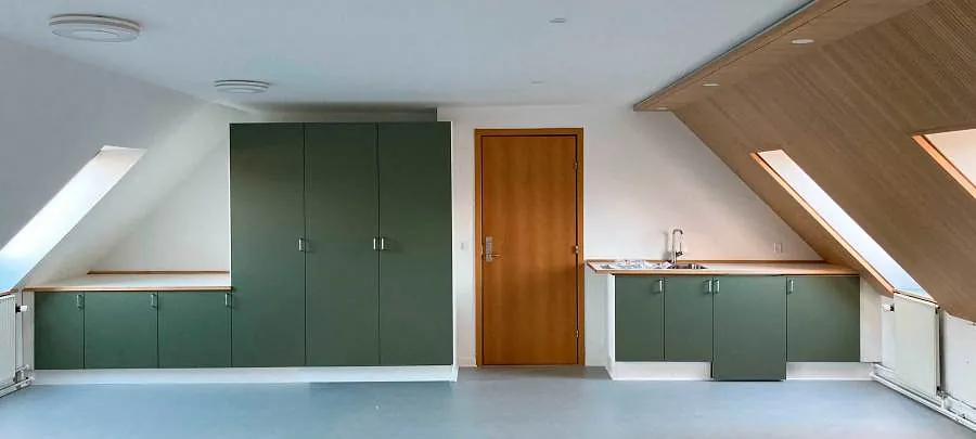 Sognegården etablerer nyt køkken til brug for husets mange arrangementer, og møderummet på overetagen er udvidet og opgraderet med nye overflader, belysning og akustikløsning.