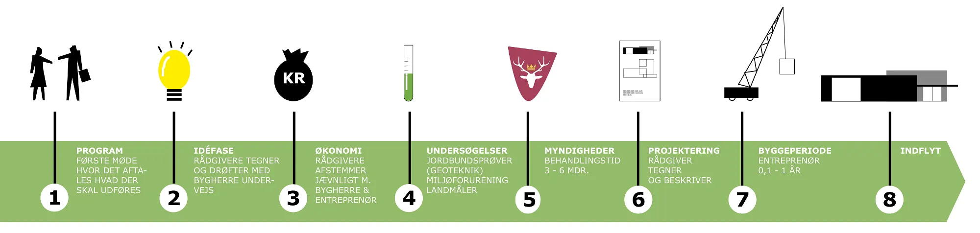TIdsplanen starter som en ramme der detaljeres løbende i takt med projektets udvikling. Kommer der større ønsker eller andre byggeprocesser til kan det få indflydelse på tidsrammen, også i positiv retning for eksempel hvis der planlægge mere rationelle processer, produkton på fabrik mv. Ukendte faktorer som jordbund, vejrlig og skjulte miljøgifte kan også alle influere på tiden, så det er vigtigt at udføre med grundige forundersøgelser tilpasset det enkelte projekt.